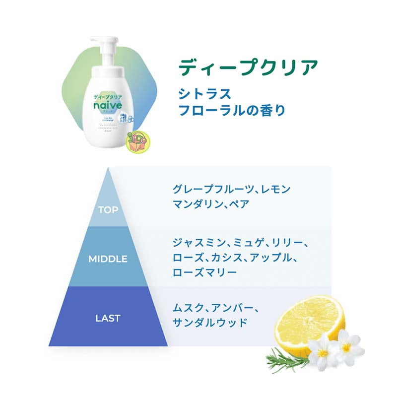 Kracie Naive Foaming Shower Gel Deep Cleansing Pump 600ml Foaming,Clean citrus floral scent