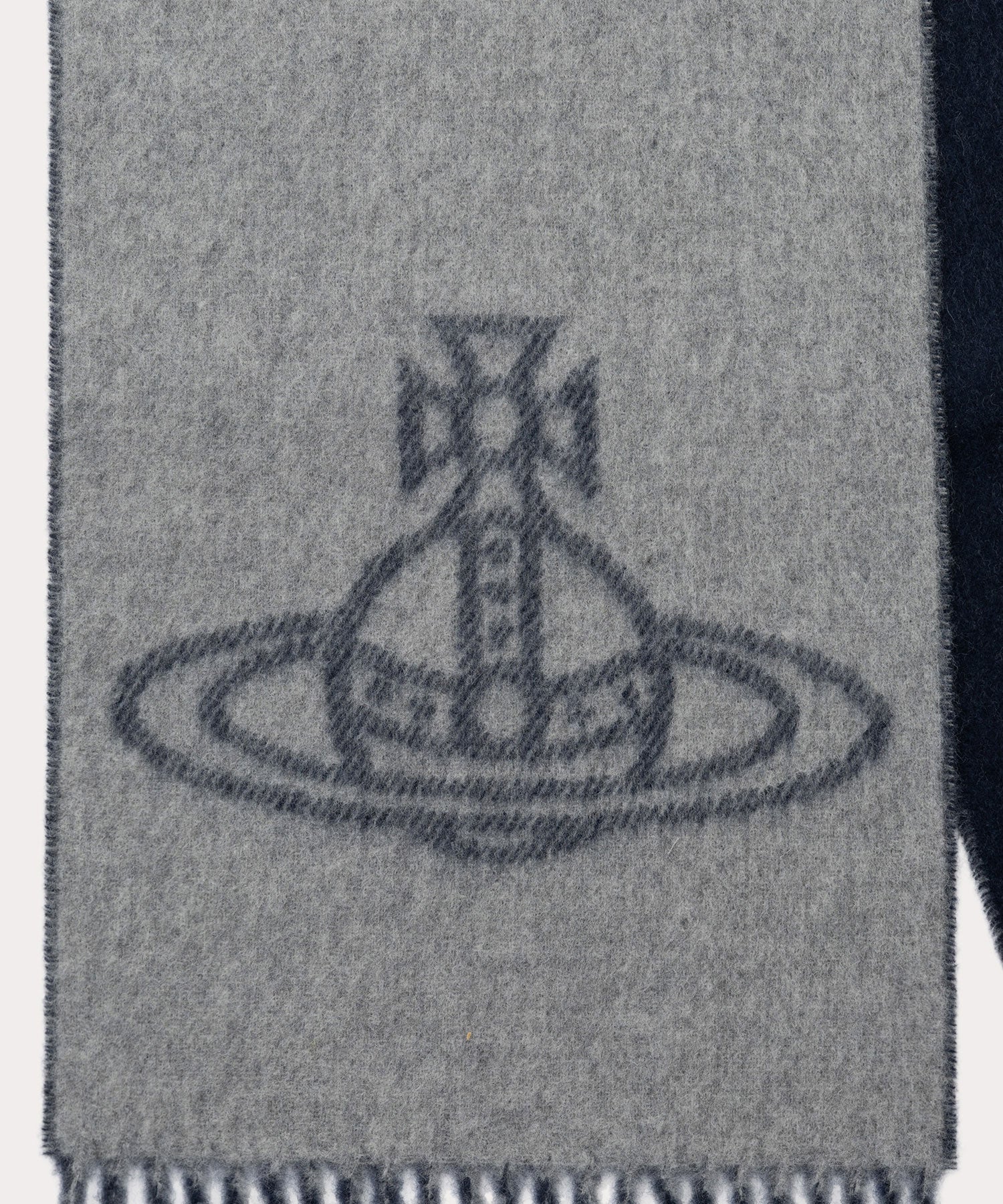 This single-loop, double-sided scarf is crafted from soft wool and can be worn on both sides to create different looks. The front features a linear circular pattern, symbolizing the fusion of tradition and modernity, while the fringed edges add a touch of elegance. This classic and versatile piece can be adjusted to suit your mood and outfit, adding a stylish touch to your winter wardrobe.