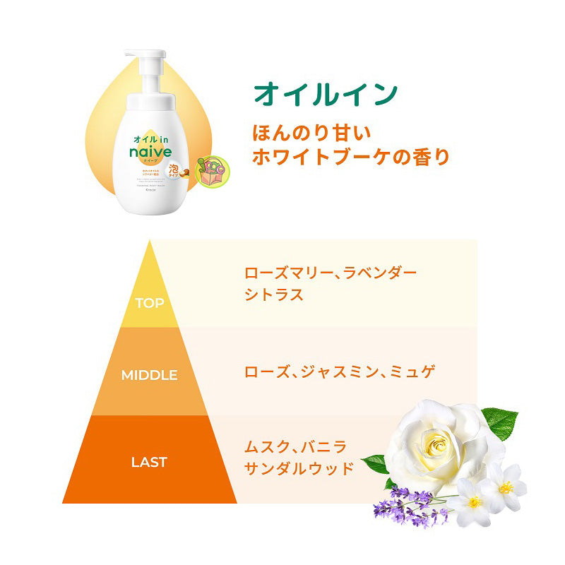 Kracie Naive Foaming Shower Gel Deep Cleansing Pump 600ml Foaming,Jojoba oil and shea butter
