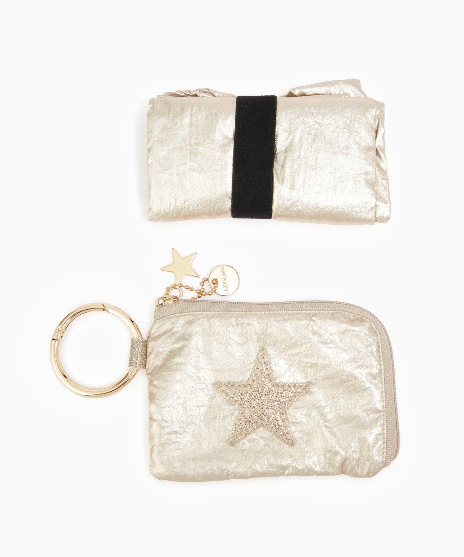 The storage bag with the sparkling star features a carabiner clip, so you can attach it to your bag and carry it anywhere.